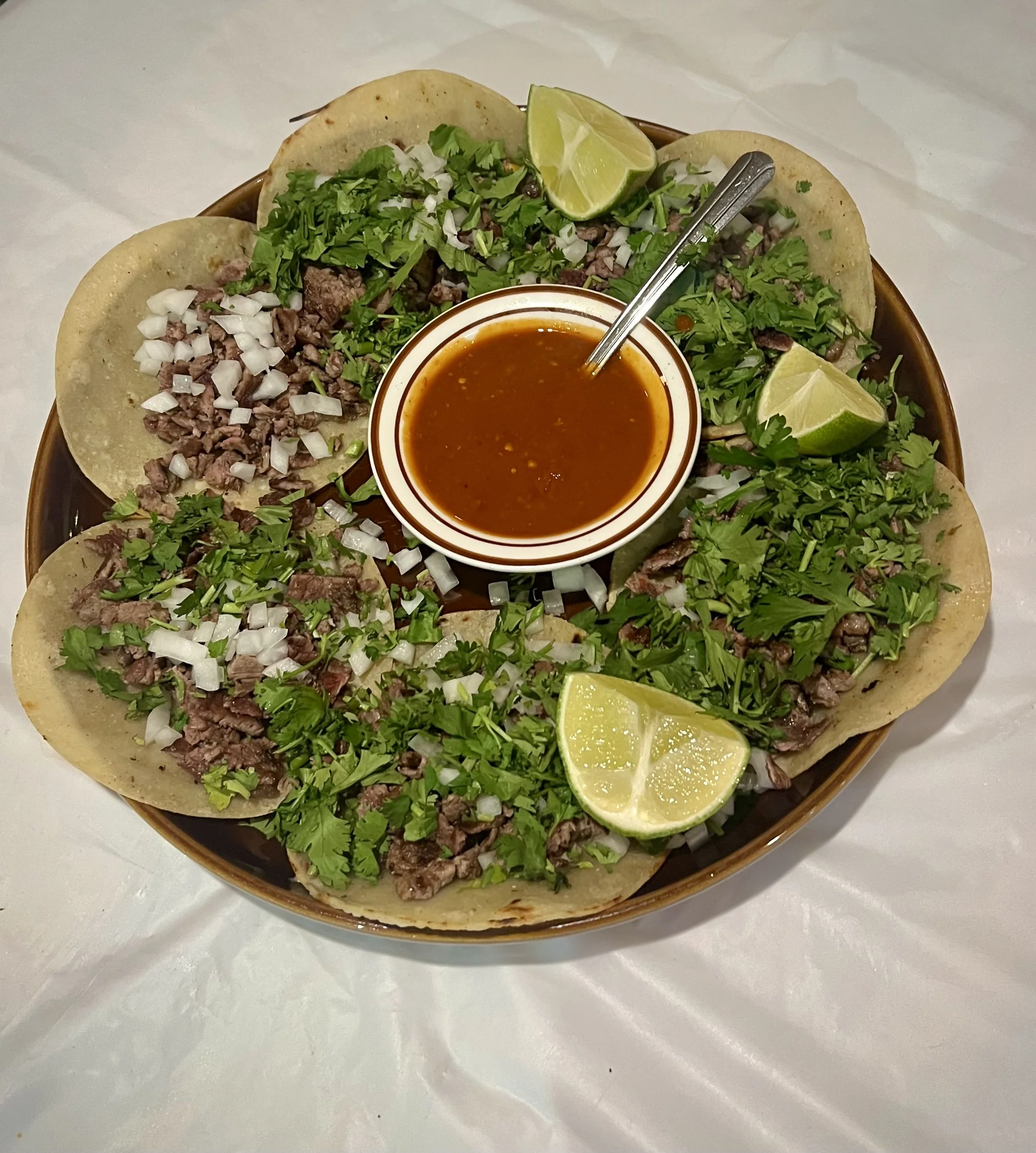 Served with choice of carnitas, carne asada, pollo, or adobada. Topped with onion, cilantro, and lime.